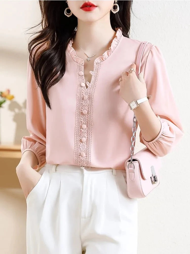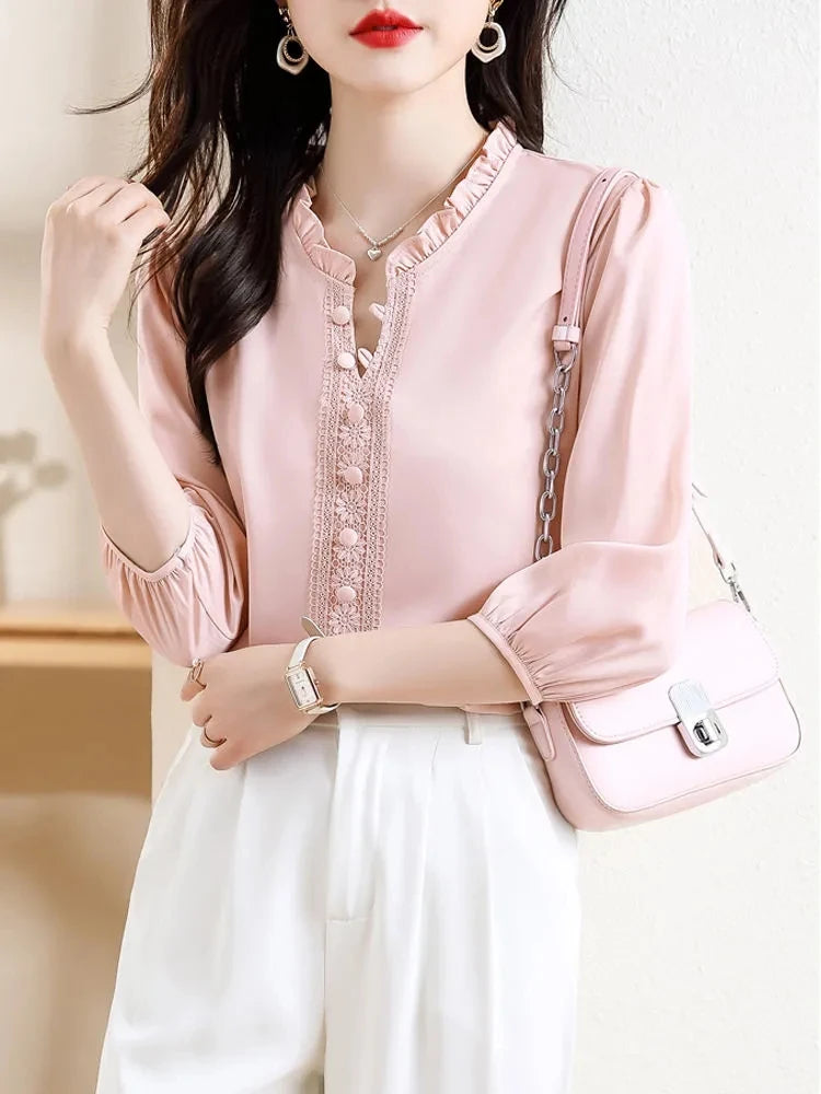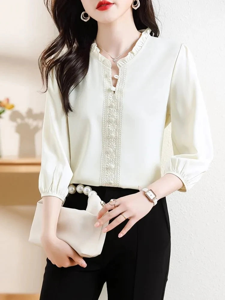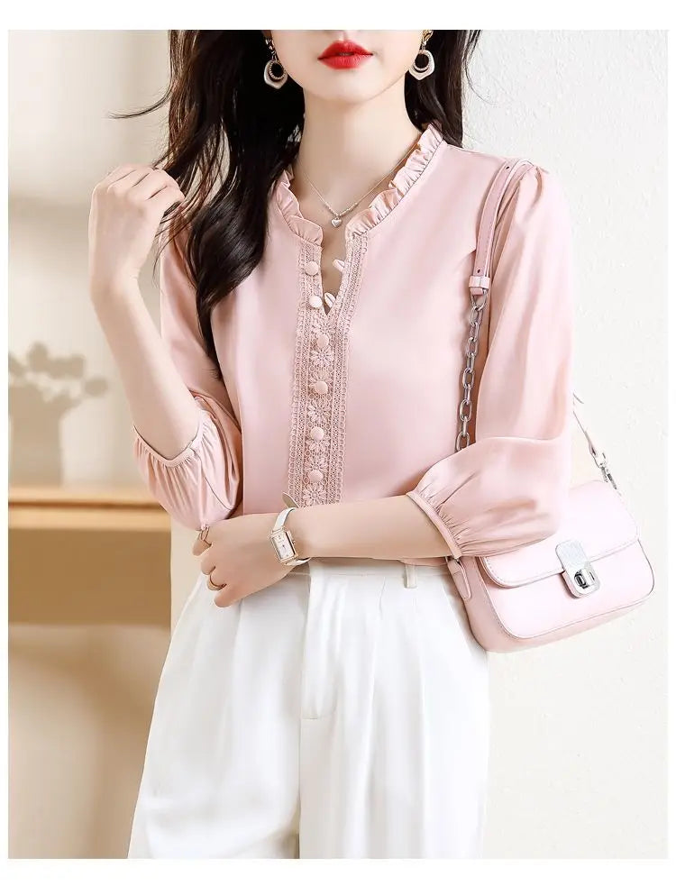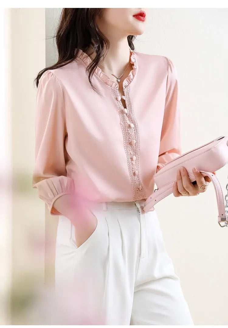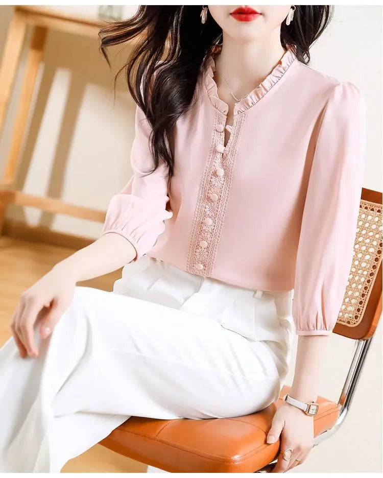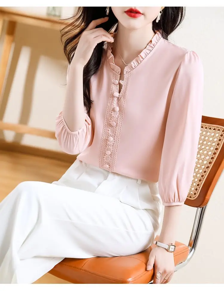 This sweet short-sleeved shirt features a Korean style design, offering a fashionable and trendy look for young women.